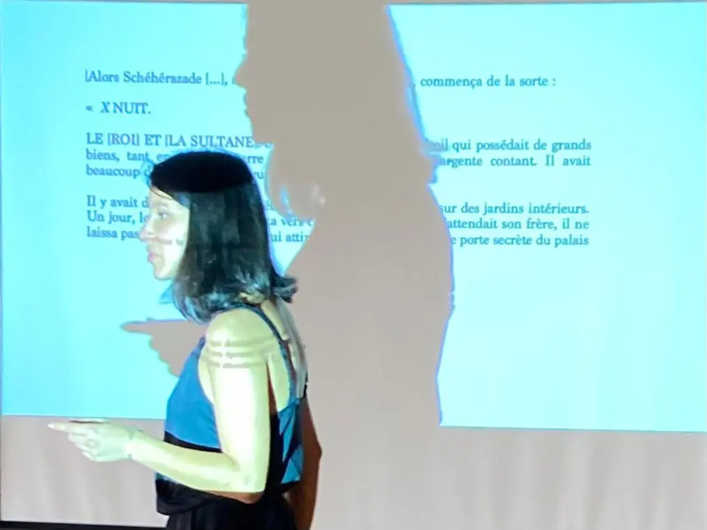 S’articulant en performance sonore et théâtrale, [Can شهرازاد speak ?] questionne les conditions de réception de la voix de Shéhérazade, personnage central des Mille et une nuits, en prenant appui sur l’essai de Gayatri Spivak, Can the Subaltern speak ?. Sur le modèle transmis d’un récit-cadre et d’un récit enchâssé, l’autrice/actrice de la performance navigue entre plusieurs temporalités et réalités pour tenter d’identifier comment s’est constitué l’imaginaire foisonnant des Mille et une nuits et comment celles-ci sont devenues l’œuvre qui nous est transmise aujourd’hui. Au risque de se perdre dans ce labyrinthe de récits, elle tente de se frayer une voie au milieu des voix multiples, dans l’espoir d'entendre quelque chose des voix tues et recouvertes.